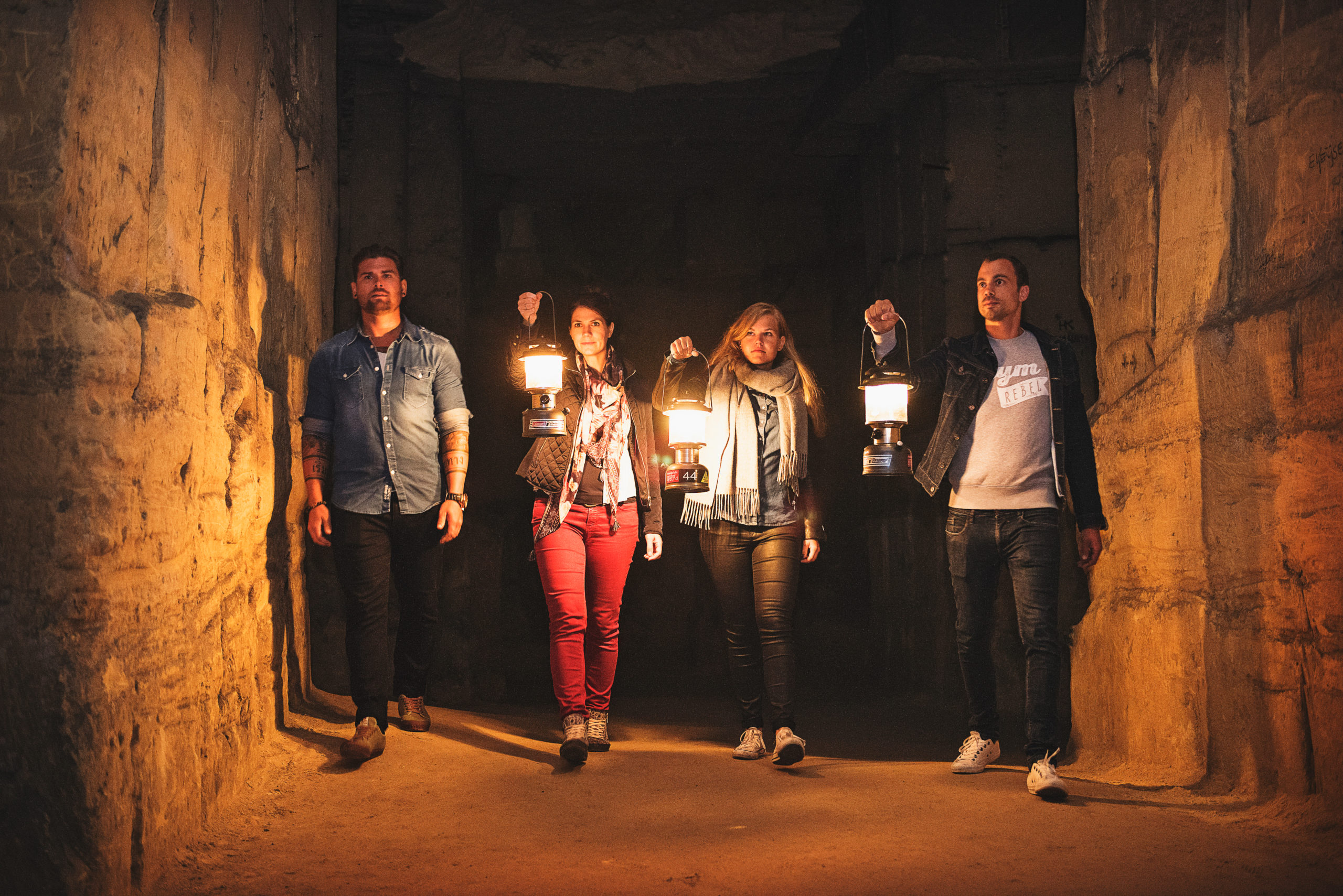 Je kunt op verschillende plekken de bijzondere mergelgrotten bezoeken. Het gebied telt bijna 60 km aan ondergronds gangenstelsel. Deze wandeltocht is altijd onder begeleiding van een ervaren gids. Luister naar de bijzondere verhalen en ontdek de rijke historie van dit uniek stukje Nederland. Voor deze wandeling moet je absoluut niet bang zijn in het donker, geen licht, geluid, of bereik met je mobiele telefoon. In een labyrint van meer dan 20.000 gangen laat je de bewoonde wereld letterlijk even achter je. Tickets koop je online, óf naast Restaurant Bergrust aan het begin van de Sint Pietersberg bij parkeerplaats Oog van Sint Pieter.